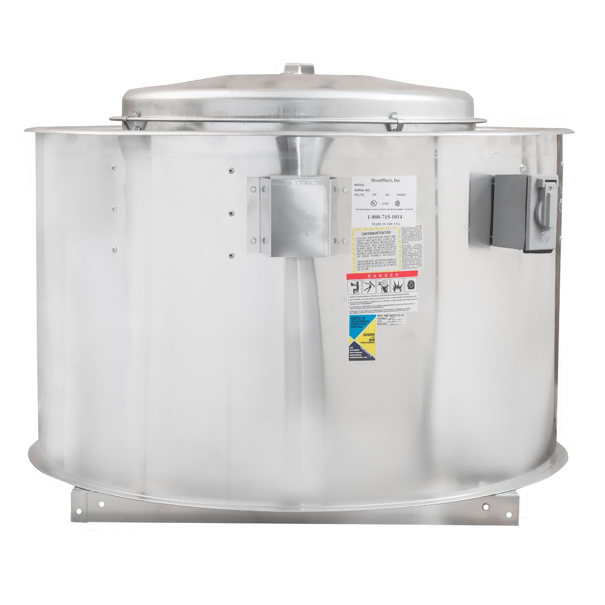 A heavy‑duty belt‑drive centrifugal upblast exhaust fan, delivering 2,000 CFM at 1674 RPM, this unit is ideal for commercial kitchen ventilation—especially grease-laden exhaust—compatible with 3‑phase electrical systems (typically 230 V) and suited for rooftop installation.